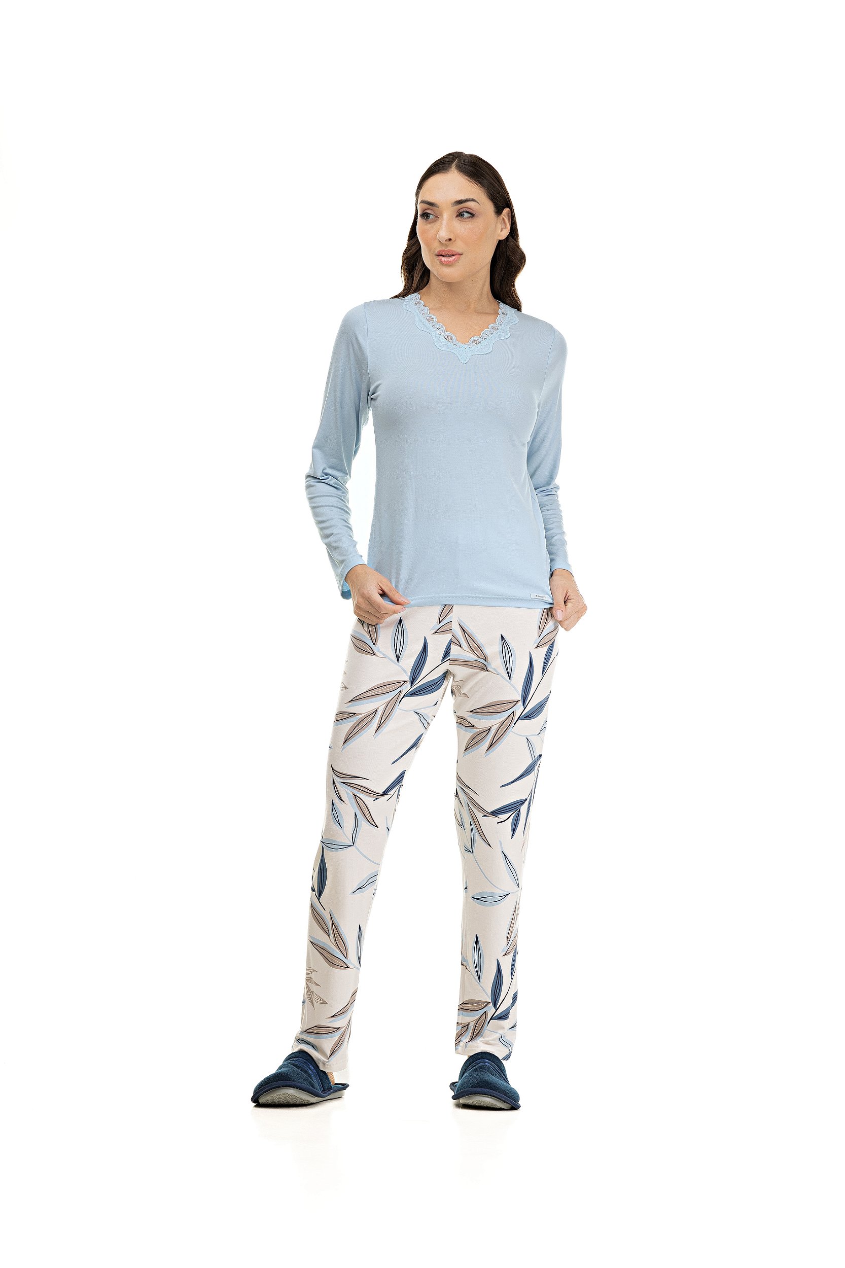 Pijama longo com toque incrível, composto 96% viscose e 4% elastano.